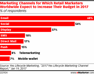 Η συγκεκριμένη έρευνα έγινε από την εταιρεία Yes Lifecycle Marketing τον Οκτώβριο του 2016 και έφτασε στο συμπέρασμα ότι οι έμποροι παγκοσμίως στοχεύουν να αυξήσουν τις πωλήσεις τους και να αυξήσουν τον αριθμό των πελατών τους μέσα στο 2017. Για να το καταφέρουν, άρχισαν να χρησιμοποιούν νέες μεθόδους επικοινωνίας με τους καταναλωτές, όπως είναι η αποστολή ενημερωτικών email αλλά και η προώθηση των προϊόντων τους στα μέσα κοινωνικής δικτύωσης. Σύμφωνα με την έρευνα, το 68% των εμπόρων θέλει να αυξήσει το κέρδος της επιχείρησής του το 2017 μέσω του email marketing, ενώ το 54% θα καταλήξει στη λύση των social media.